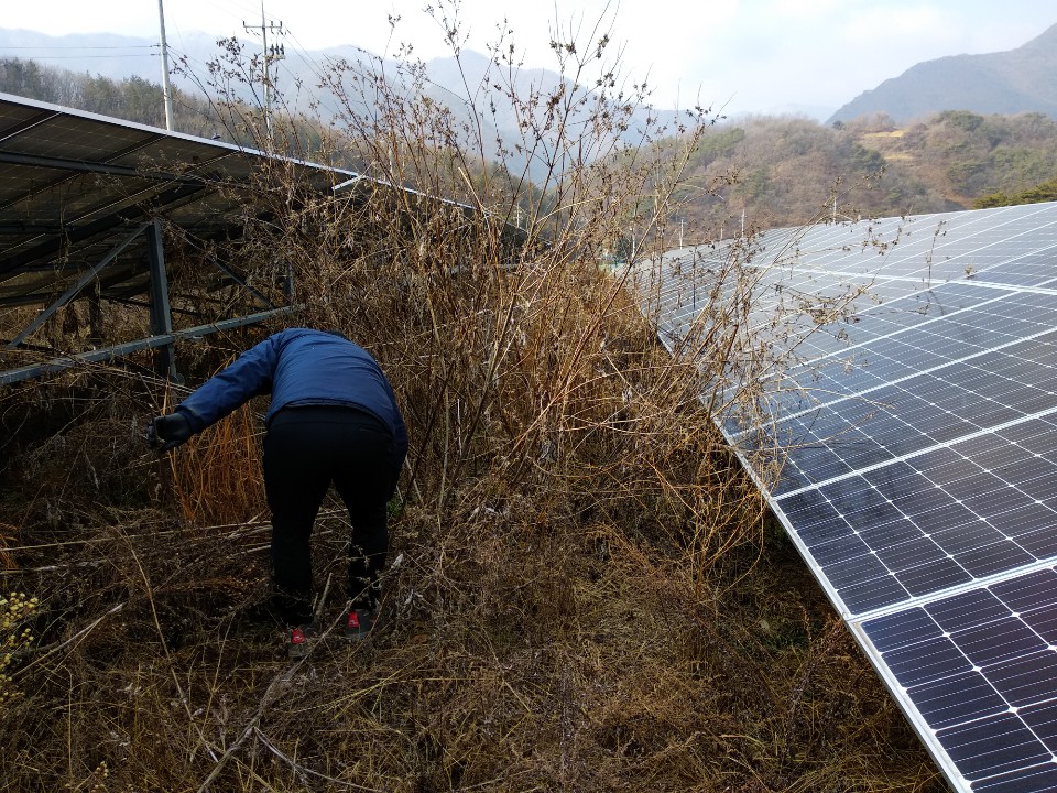 발전소 내에 잡초로 인한 음영 확인하고 제초작업