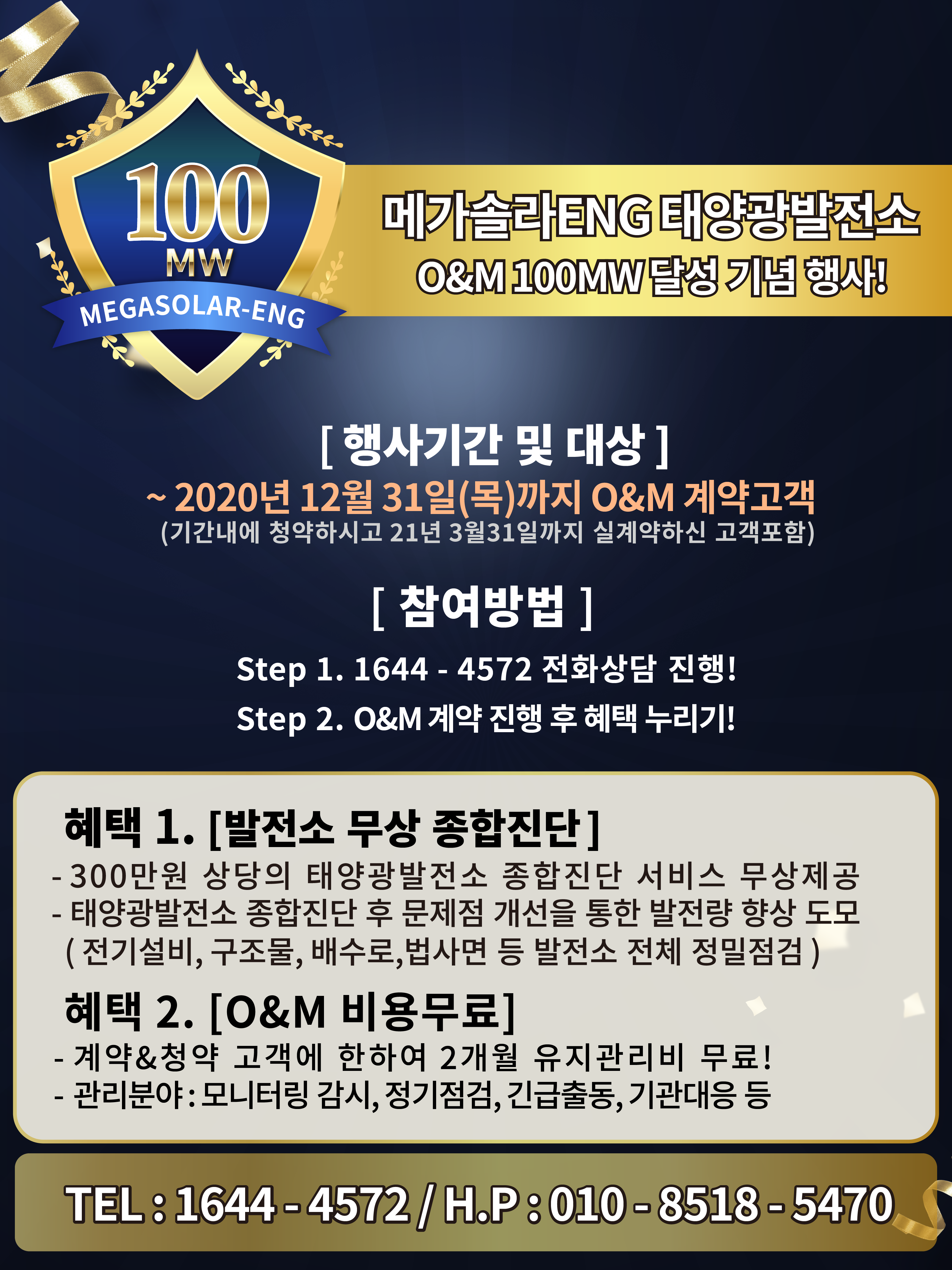 발전소 무상 종합진단 서비스를 제공하고 2개월 간 O&M 서비스를 무료로 제공해드립니다.